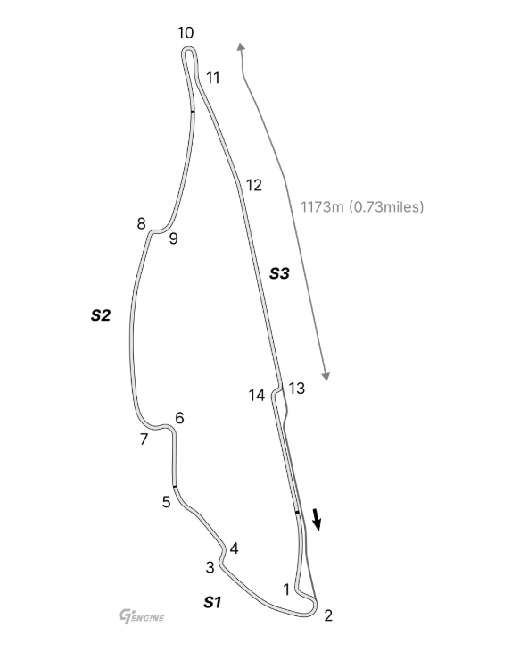 - Längste Gerade: 1.173 m