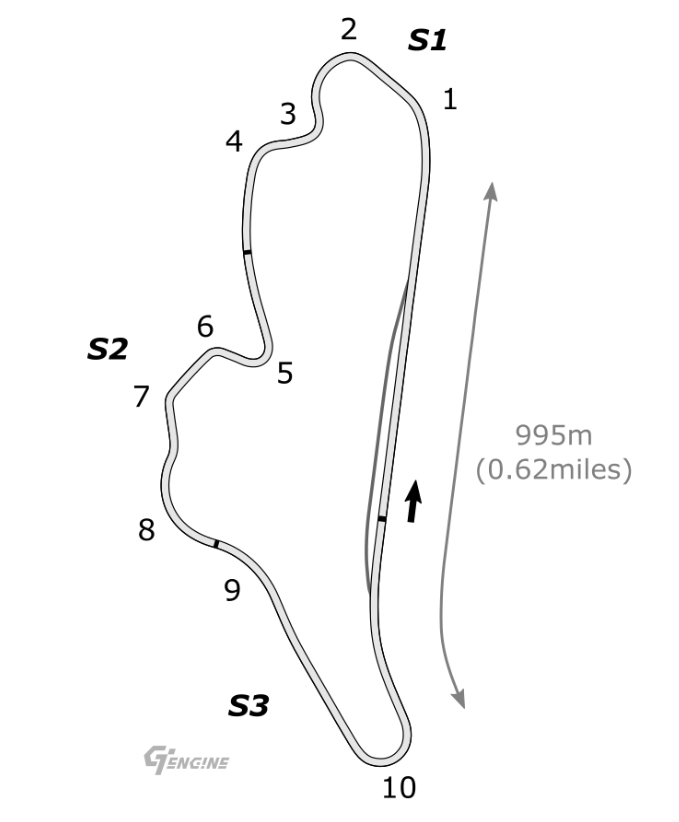 Eine gute Runde auf dieser Strecke erfordert sowohl Mut als auch ein hohes Maß an Fokussierung. Die Strecke bietet wenig Raum für Fehler und hat einige technische und unübersichtliche Abschnitte, die es schwer machen sie zu lesen, zu beurteilen oder zu überholen.